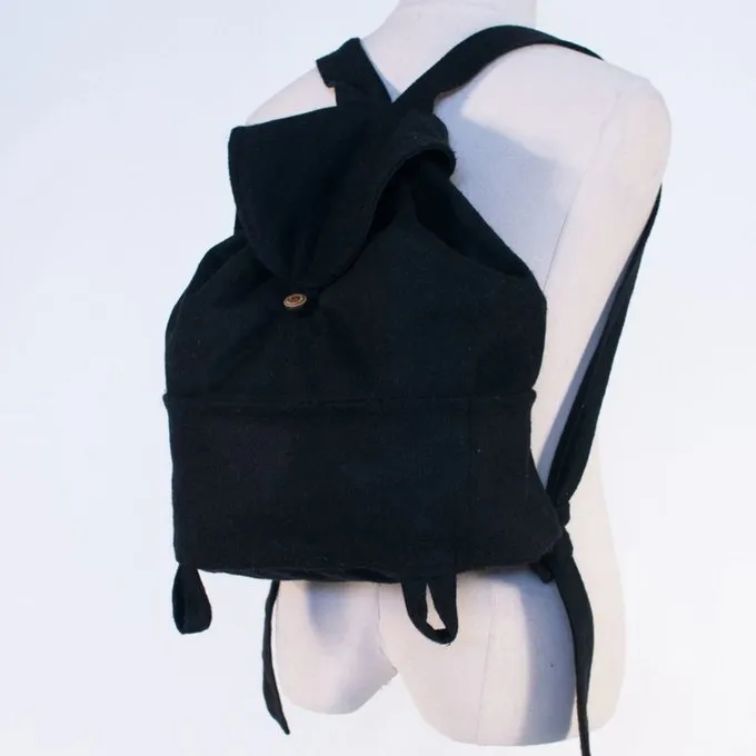 Diese Tasche hat Griffe hängen sie auf dem Rücken und mit einem Knopf geschlossen. Es verfügt über mehrere offene Ablagefächer auf der Rückseite. Hinweis: Die abgebildeten Zusätze sind nicht enthalten. Der Rucksack hat Schlaufen am Boden, auf dem Sie alle möglichen Dinge hängen. Der abgebildete Gürtel nicht enthalten ist, können Sie Ihr eigenes Seil oder Riemen verwenden, um etwas am Boden zu befestigen.