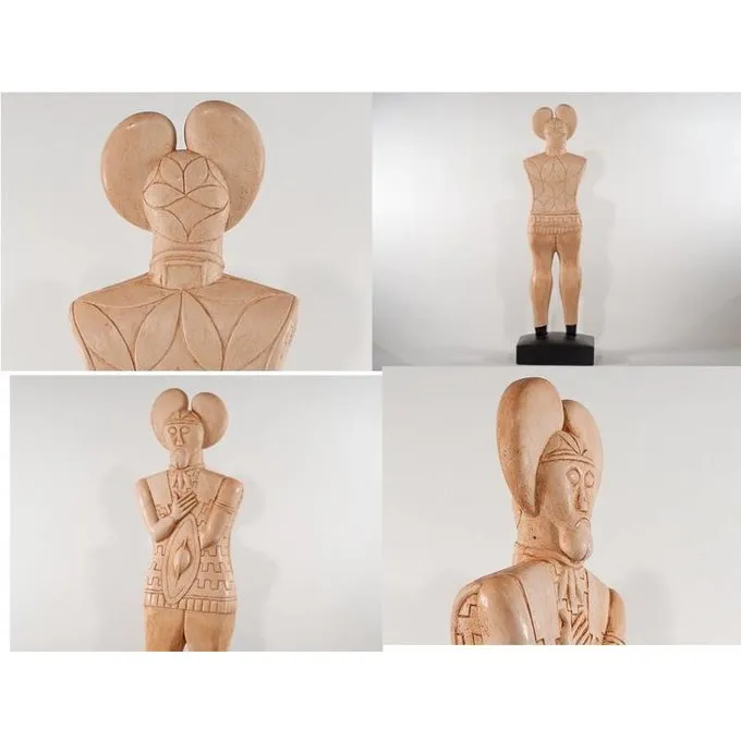 Diese Büste aus Gips Alabaster gefertigt und hat einen Marmorsockel. Seine Höhe beträgt 45 cm. Vermutlich wurden diese Statuen bemalt wie bei griechischen, etruskischen war (und später Römer) Statuen