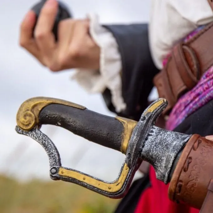 Neu in der epischen Waffenstillstandskollektion: gekrümmte LARP -Waffen! Der gebogene Säbel ist eine Waffe, die einer Armee oder einem Marineoffizier oder Piraten -Larp anpasst. Trotz der Krümmung der Klinge bietet das Schwert die gleiche Flexibilität und Sicherheit, die Sie von einer anderen epischen Waffenwaffe erwarten würden. Der Polyurethangriff ist reich an Details dekoriert, die einem Ledergriff auf golddekorierte Stahl ähneln. Weniger wohlhabende Charaktere können stattdessen ein gebogenes Schwert verwenden. Eine elegante Waffe für LARP -Charaktere mit einem wohlhabenden maritimen Hintergrund.