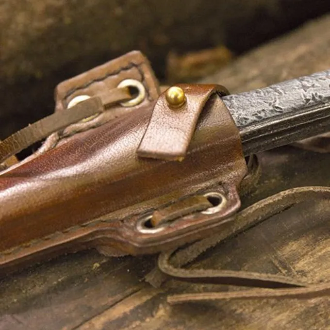 Dieses Set besteht aus einem Lederhalter mit einem LARP Halsabschneider Messer. Mit den Schnürsenkel können Sie die Halterung an einem Gürtel oder einer baldric befestigen. Mit einem zusätzlichen Schleife können Sie das LARP Messer in der Halterung befestigen, so dass es an seinem Platz bleibt auch in der Hitze des Gefechts.
