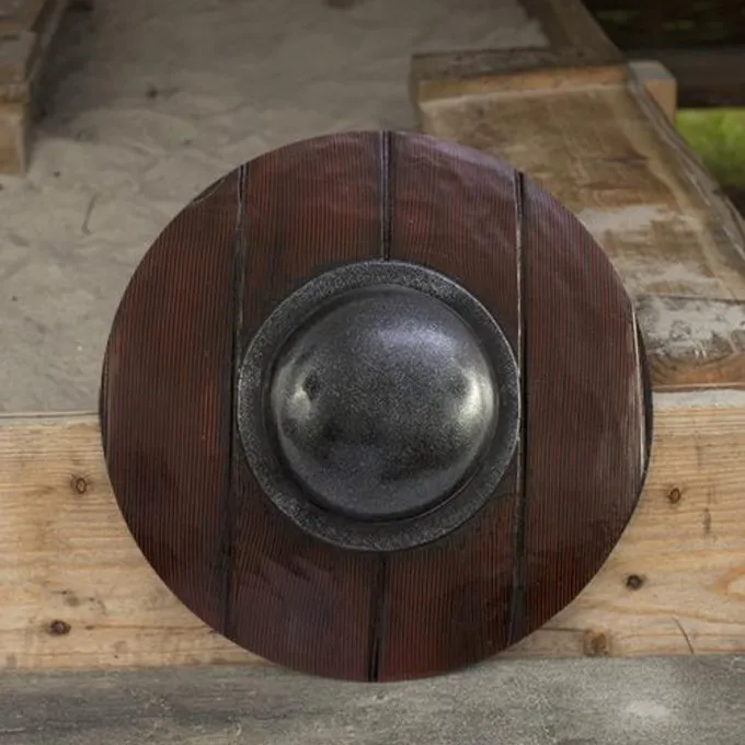 Dieser LARP-Buckler ist naturgetreu lackiert und ähnelt den Originalen mit einer Holzoberfläche und einem Metallschildbuckel. Auf der Rückseite hat es einen Griff, der mit Leder umwickelt ist, so dass Sie es gut und bequem halten können. Ein wesentliches Attribut für Ihren historischen LARP-Charakter während der Kämpfe.