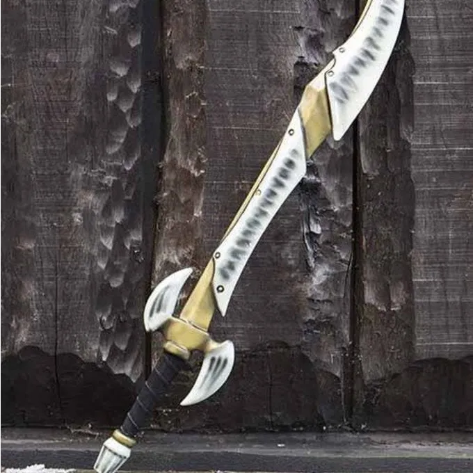 Das LARP-Schwert wird von Epic Armories aus Dänemark hergestellt. Das Schwert ist geeignet für beginn LARP-ers und erfahrene Spieler. Es ist aus stabilem Schaumstoff, hat eine äußere Schicht aus lackiertem Latex und hat einen Glasfaserkern für zusätzlichen Schutz in einer Kevlar-Schicht gewickelt.