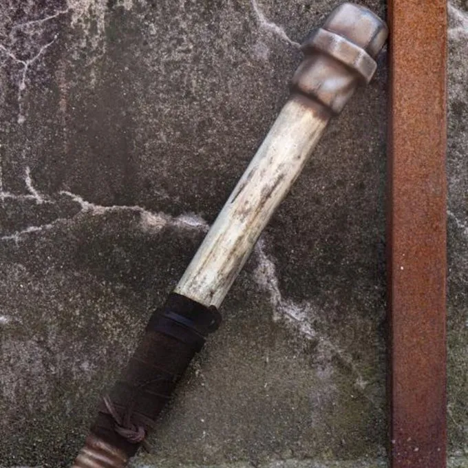 Während die Apokalypse verwenden Sie alles, was als Waffe, die man auf den Straßen nach der Zerstörung der Gesellschaft und ihrer Infrastruktur, wie dieses Metallrohr finden. Es sieht sehr realistisch und der Griff ist mit weichem Veloursleder umwickelt.