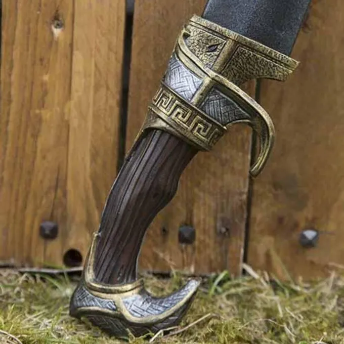 Material: Fiberglas, EVA-Schaum, Latex / Geeignet für LARP Schlachten / Länge: 85 cm / Grifflänge: 9,5 cm / Klingenlänge: 66 cm / Klingenbreite: 6,5 cm / Breite der Parierstange: 3 cm / Umfang Griff: 9,5 cm / Gewicht: 360 g