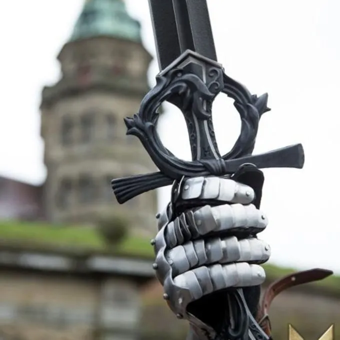 Material: Fiberglas, EVA-Schaum / Geeignet für LARP Schlachten / Länge: 96 cm / Grifflänge: 8 cm / Klingenlänge: 65 cm / Klingenbreite: 6 cm / Breite der Parierstange: 19 cm / Umfang Griff: 9,5 cm / Gewicht: 440 Gramm