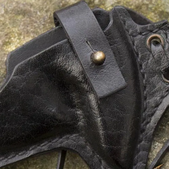 Dieses Set besteht aus einem Lederhalter mit einer LARP schwarz Shuriken. Mit den Schnürsenkel können Sie die Halterung an einem Gürtel oder einer baldric befestigen. Mit einem zusätzlichen Schleife können Sie die Shuriken in der Halterung sichern, so dass es an seinem Platz bleibt auch in der Hitze des Gefechts.