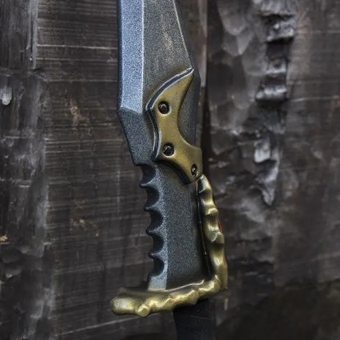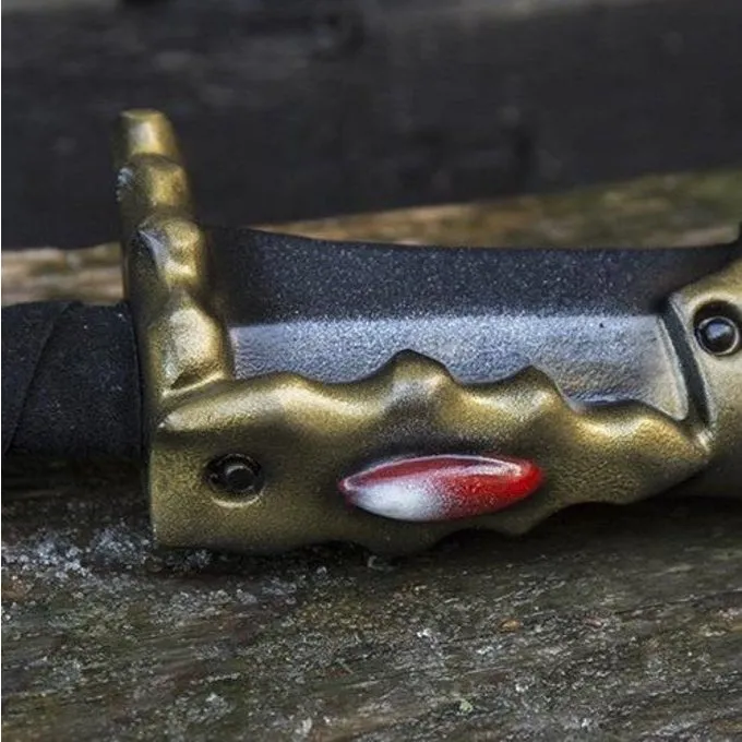 Soul Stealer, LARP Schwert mit einem goldfarbenen Knauf, Parierstange und Ornamenten. Diese Waffe hat einen Glasfaserkern mit einer Schicht aus Schaum, der dauerhaft mit einer starken Schicht aus Latex beschichtet ist. Die Gesamtlänge des Schwerts beträgt ca. 110 cm, mit einer Klinge von 80 cm, ein Griff von 24 cm und wiegt 420 g. Die Spitze wird für zusätzliche Sicherheit mit Kevlar, erzwungen. Das Schwert ist handgefertigt und von Hand gefärbt, so jedes Element einzigartig ist. Aufgrund des Materials empfehlen wir nicht, das Schwert in der Sonne für längere Zeit verlassen. Epic Armoury Schwerter erfüllen hohe Sicherheitsstandards.