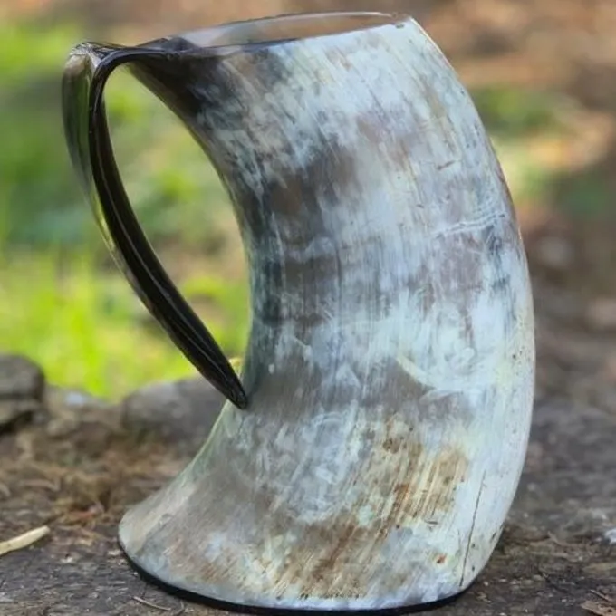Diese XL Horn Trinkbecher von Epic Armoury ist perfekt für alle Ihre Lieblings-kalten Getränken. Ideal für Reenactment und LARP, für Feste oder entspannt zu Hause auf der Couch. Dieser Becher hat ein riesiges Volumen von 1 Liter! Es ist offiziell für den Verzehr von kalten Getränken zugelassen, so dass es auch für die Gastronomie und Restaurants. Bereits im antiken Griechenland die Menschen trinken aus Hörnern. Horn wurde mit besonderen Anlässen und Parteien verbunden ist. Nur wenige Hörner wurden von der Antike und dem frühen Mittelalter ausgegraben. Sie sind in illuminierten Handschriften und andere visuelle Kunst und textuellen Beschreibungen von Bildern bekannt. Dieses Horn Trinkbecher hat ein Ohr für sie zu halten oder es zu einem Gurthalter befestigen. Die Hornoberfläche poliert und das Horn hat eine helle Farbe.