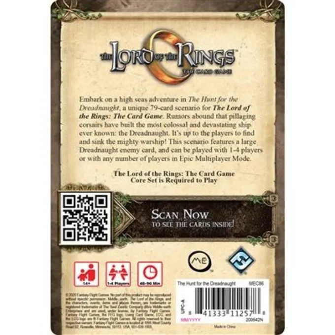 Die Jagd nach dem Dreadnaught ist ein einzigartiges Szenario-Paket für den Herrn der Ringe: Das Kartenspiel! . Egal, ob Sie mit einer einzigen Gruppe von ein bis vier Spielern oder mit einer beliebigen Anzahl von Gruppen im epischen Multiplayer -Modus spi