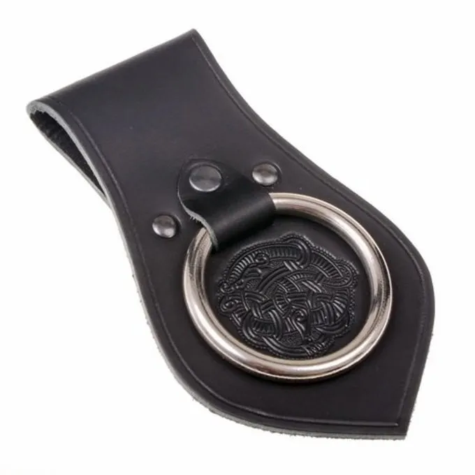 Material: Leder, Stahl / / Maße: 17 x 9,5 cm / / Max. Gürtelbreite: 5 cm / / Mit Gürtelschlaufe / / Ringinnendurchmesser: 5,5 cm / / Ringdicke: 6 mm / / Lederstärke: 3 – 3,5 mm / / Farbe schwarz / / Auf der Grundlage eines historischen Originals