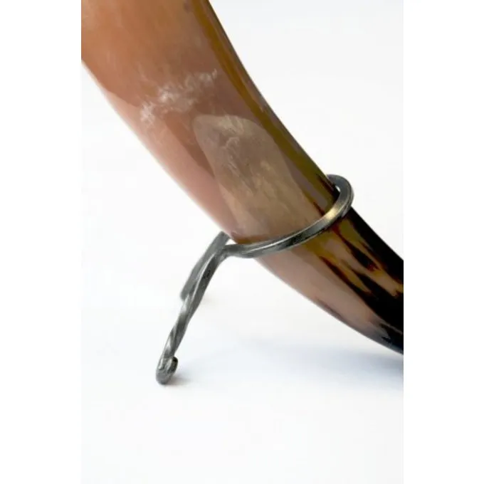 Ein schönes Eisen Trinkhorn Halter perfekt für die kleineren Größen Trinkhorn. Dieser handgemachte Halter ist aus verdrillten Eisen. Es ist geeignet für Trinkhörner von rd. 100-300 ML (0,1-0,3L).