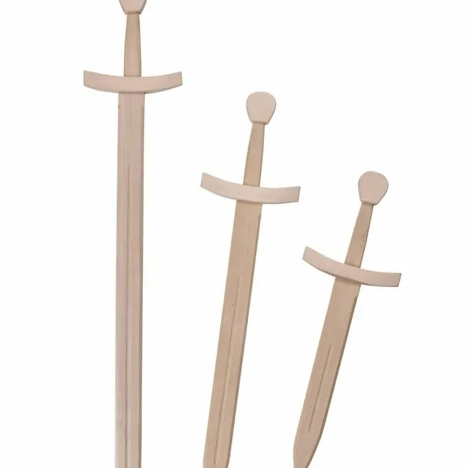 Dieses Holzspielzeugschwert wurde nach mittelalterlichen Vorlagen gemacht. Es ist in drei verschiedenen Längen erhältlich.